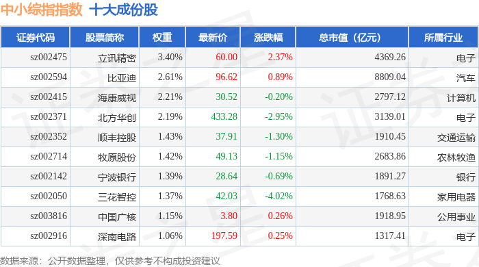 证券之星消息,12月2日,中小综指(399101)指数报收于14048.37点,跌0.72%,成交3236.95亿元,换手率2.67%。当日该指数成份股中,上涨的有311家,海欣食品以10.05%的涨幅领涨,下跌的有620家,实丰文化以10.0%的跌幅领跌。