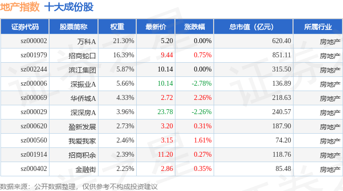 证券之星消息,12月2日,地产指数(399241)报收于1262.97点,涨0.5%,成交100.66亿元,换手率3.3%。当日该指数成份股中,上涨的有23家,世联行以9.87%的涨幅领涨,下跌的有8家,沙河股份以3.43%的跌幅领跌。