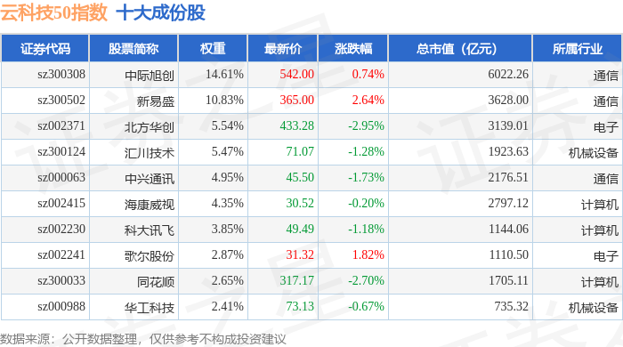 近10日内云科技50(399279)指数成份股做了调整,新纳入了2只股票,剔除了2只股票。