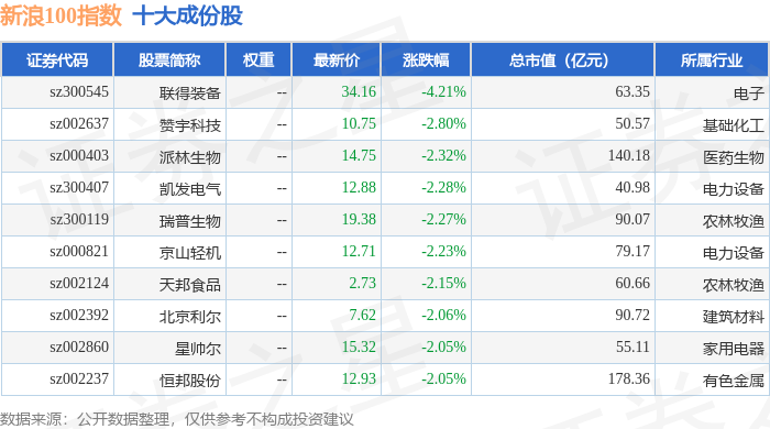 近10日内新浪100(399297)指数成份股做了调整,新纳入了54只股票。
