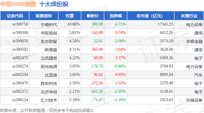 证券之星消息,12月2日,中创100R(399611)指数报收于3144.34点,跌0.62%,成交1735.37亿元,换手率1.22%。当日该指数成份股中,上涨的有19家,金风科技以4.19%的涨幅领涨,下跌的有80家,三花智控以4.02%的跌幅领跌。