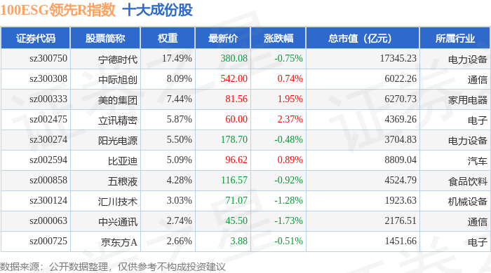 证券之星消息,12月2日,100ESG领先R(470030)指数报收于9157.82点,跌0.26%,成交1146.15亿元,换手率1.13%。当日该指数成份股中,上涨的有14家,领益智造以3.31%的涨幅领涨,下跌的有35家,三花智控以4.02%的跌幅领跌。