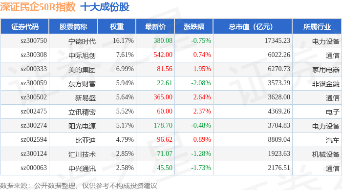 深证民企50R(470057)指数十大成份股详情如下: