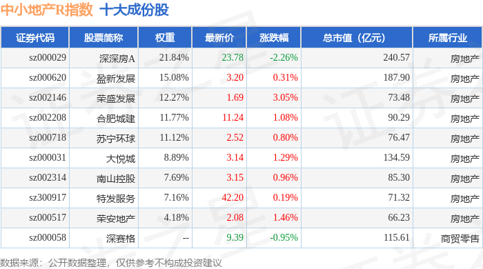中小地产R(471002)指数十大成份股详情如下: