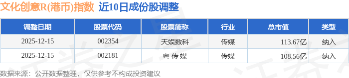 近10日内文化创意R(港币)(480047)指数成份股做了调整,新纳入了2只股票。