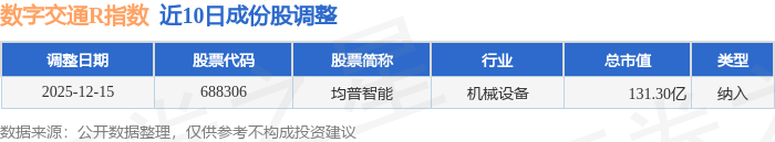 近10日内数字交通R(480075)指数成份股做了调整,新纳入了1只股票。