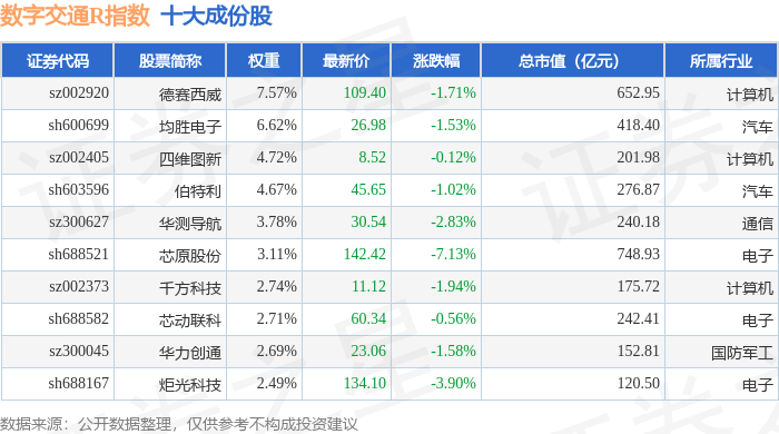 数字交通R(480075)指数十大成份股详情如下: