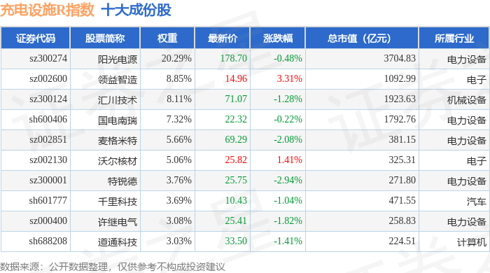 充电设施R(480077)指数十大成份股详情如下: