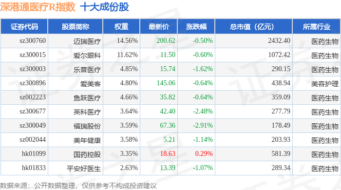 近10日内深港通医疗R(483035)指数成份股做了调整,新纳入了1只股票。