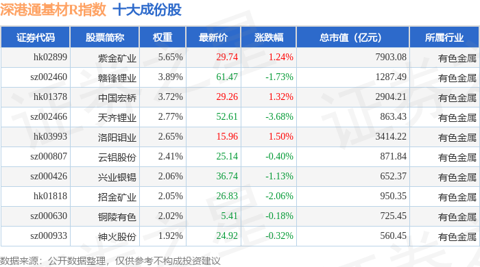 深港通基材R(483061)指数十大成份股详情如下: