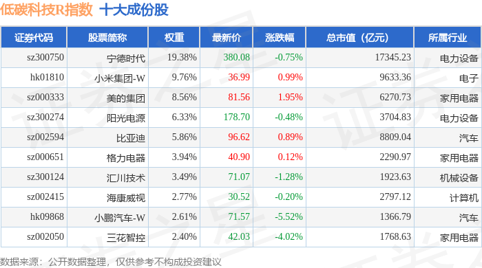 低碳科技R(483160)指数十大成份股详情如下: