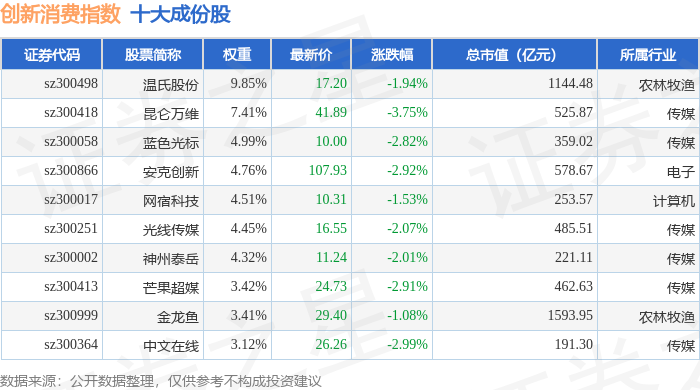 近10日内创新消费(970041)指数成份股做了调整,新纳入了3只股票,剔除了3只股票。