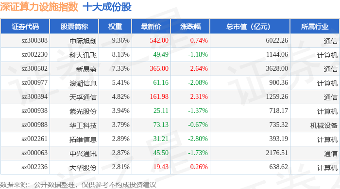 证券之星消息,12月2日,深证算力设施(970051)指数报收于11172.29点,跌0.75%,成交1010.08亿元,换手率3.09%。当日该指数成份股中,上涨的有8家,兆龙互连以5.65%的涨幅领涨,下跌的有42家,光库科技以4.53%的跌幅领跌。