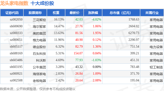 近10日内龙头家电(980028)指数成份股做了调整,新纳入了3只股票。