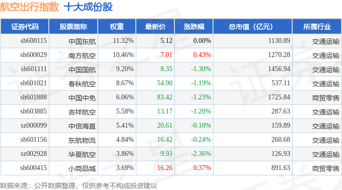 近10日内航空出行(980059)指数成份股做了调整,新纳入了4只股票。