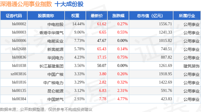 资金流向方面,深港通公用事业(983031)指数成份股当日主力资金净流出合计3.04亿元,游资资金净流入合计3732.16万元,散户资金净流入合计2.67亿元。成份股资金流向详情见下表: