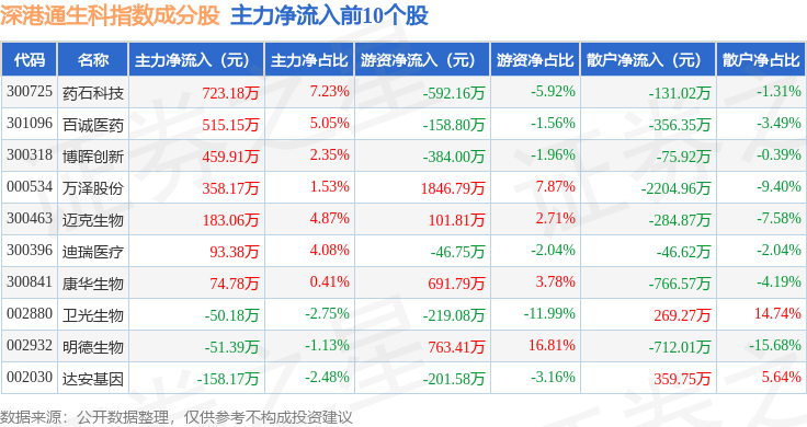 资金流向方面,深港通生科(983059)指数成份股当日主力资金净流出合计4.61亿元,游资资金净流入合计1.56亿元,散户资金净流入合计3.05亿元。成份股资金流向详情见下表: