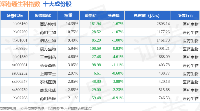 深港通生科(983059)指数十大成份股详情如下: