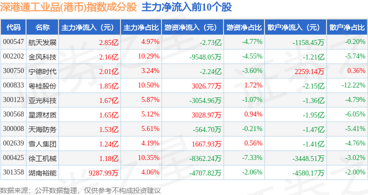 资金流向方面,深港通工业品(港币)(983070)指数成份股当日主力资金净流出合计50.79亿元,游资资金净流入合计6.45亿元,散户资金净流入合计44.33亿元。成份股资金流向详情见下表: