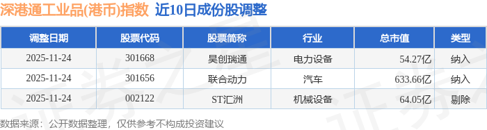 近10日内深港通工业品(港币)(983070)指数成份股做了调整,新纳入了2只股票,剔除了1只股票。
