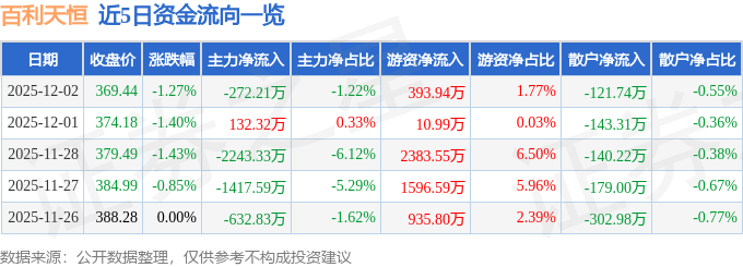 12月2日的资金流向数据方面,主力资金净流出272.21万元,占总成交额1.22%,游资资金净流入393.94万元,占总成交额1.77%,散户资金净流出121.74万元,占总成交额0.55%。