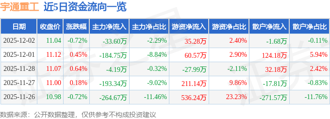 12月2日的资金流向数据方面,主力资金净流出33.6万元,占总成交额2.29%,游资资金净流入35.28万元,占总成交额2.4%,散户资金净流出1.68万元,占总成交额0.11%。