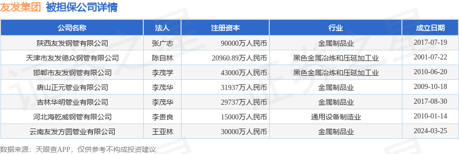 友发集团12月1日披露9笔对外担保,被担保公司7家。对外担保明细如下表: