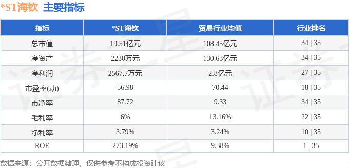 *ST海钦2025年三季报显示,前三季度公司主营收入6.77亿元,同比上升188.11%;归母净利润2567.7万元,同比上升135.64%;扣非净利润1953.12万元,同比上升127.89%;其中2025年第三季度,公司单季度主营收入3.52亿元,同比上升1780.55%;单季度归母净利润1820.83万元,同比上升151.36%;单季度扣非净利润1436.81万元,同比上升142.07%;负债率92.11%,投资收益0.53万元,财务费用207.48万元,毛利率6.0%。*ST海钦(600753)主营业务:大宗商品供应链业务。