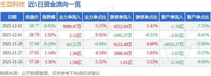 证券之星消息,截至2025年12月2日收盘,生益科技(600183)报收于58.77元,下跌0.03%,换手率1.25%,成交量29.93万手,成交额17.66亿元。