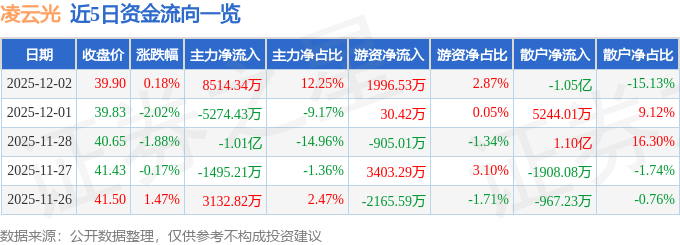 证券之星消息,截至2025年12月2日收盘,凌云光(688400)报收于39.9元,上涨0.18%,换手率3.76%,成交量17.33万手,成交额6.95亿元。