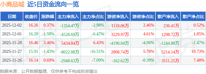 12月2日的资金流向数据方面,主力资金净流出1354.47万元,占总成交额2.98%,游资资金净流入1118.06万元,占总成交额2.46%,散户资金净流入236.41万元,占总成交额0.52%。