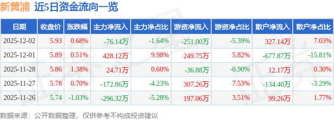 12月2日的资金流向数据方面,主力资金净流出76.14万元,占总成交额1.64%,游资资金净流出251.0万元,占总成交额5.39%,散户资金净流入327.14万元,占总成交额7.03%。