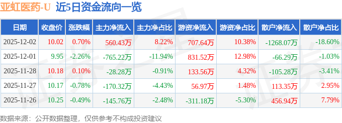 证券之星消息,截至2025年12月2日收盘,亚虹医药(688176)报收于10.02元,上涨0.7%,换手率1.56%,成交量6.8万手,成交额6818.58万元。
