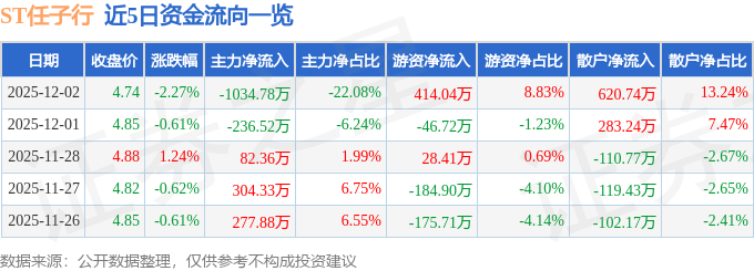 12月2日的资金流向数据方面,主力资金净流出1034.78万元,占总成交额22.08%,游资资金净流入414.04万元,占总成交额8.83%,散户资金净流入620.74万元,占总成交额13.24%。