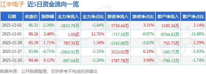12月2日的资金流向数据方面,主力资金净流出2815.78万元,占总成交额5.44%,游资资金净流入1710.44万元,占总成交额3.31%,散户资金净流入1105.34万元,占总成交额2.14%。