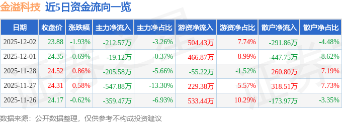 12月2日的资金流向数据方面,主力资金净流出212.57万元,占总成交额3.26%,游资资金净流入504.43万元,占总成交额7.74%,散户资金净流出291.86万元,占总成交额4.48%。