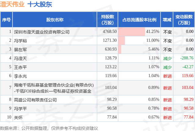 根据澄天伟业2025年三季报公布的十大股东详情如下:
