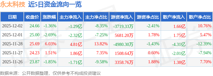 12月2日的资金流向数据方面,主力资金净流出1.29亿元,占总成交额8.35%,游资资金净流出3719.33万元,占总成交额2.41%,散户资金净流入1.66亿元,占总成交额10.76%。