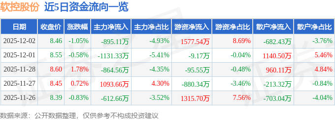 12月2日的资金流向数据方面,主力资金净流出895.11万元,占总成交额4.93%,游资资金净流入1577.54万元,占总成交额8.69%,散户资金净流出682.43万元,占总成交额3.76%。