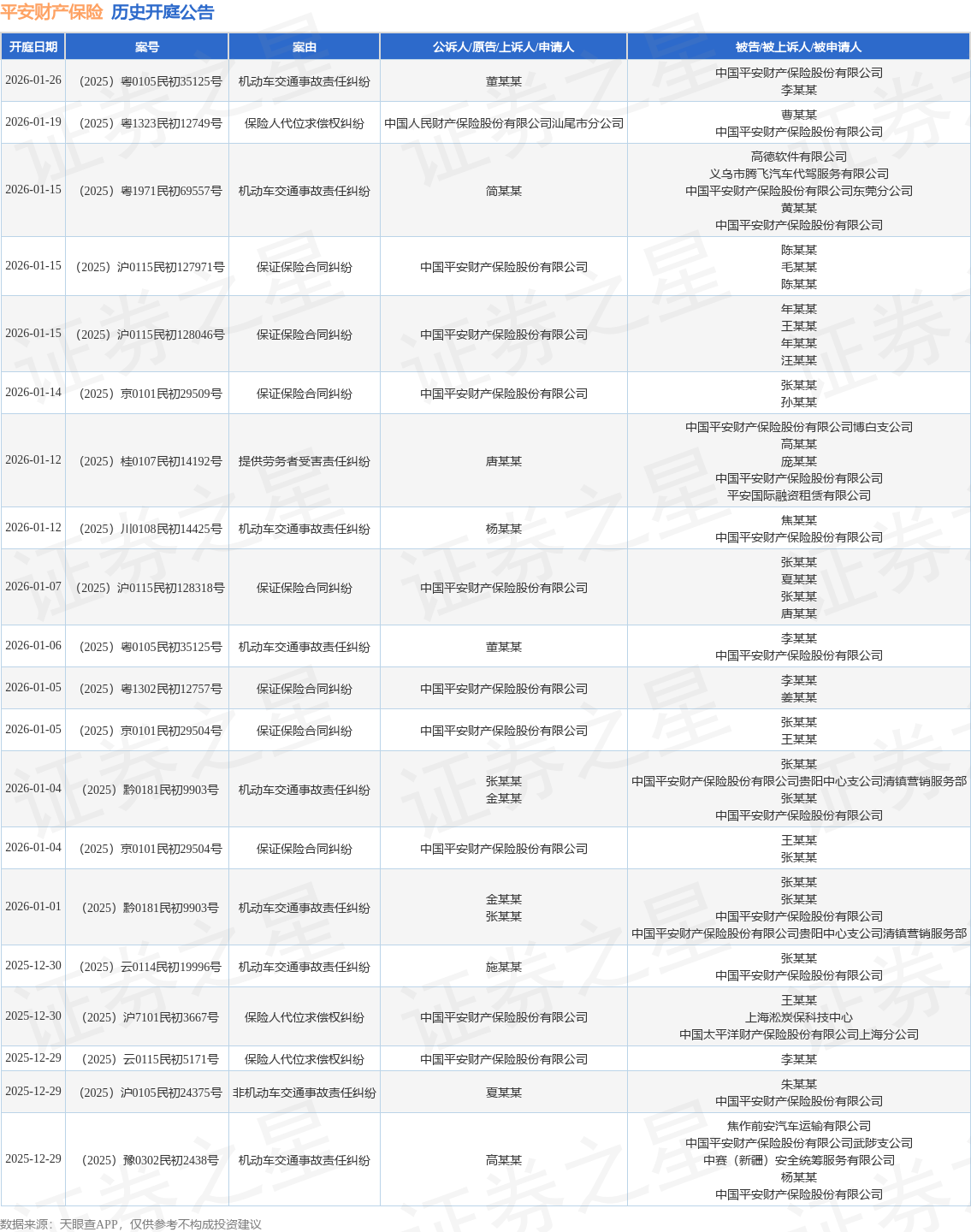 证券之星消息,根据天眼查APP显示,近日公布了一则中国平安财产保险股份有限公司作为被告/被上诉人的开庭公告,详细内容如下: