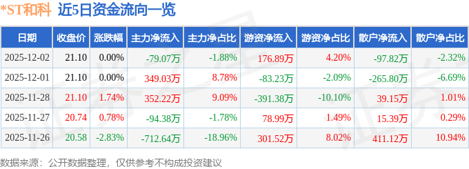 证券之星消息,截至2025年12月2日收盘,*ST和科(002816)报收于21.1元,上涨0.0%,换手率1.99%,成交量1.99万手,成交额4213.27万元。