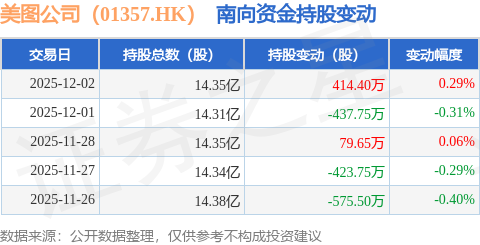 证券之星消息,12月2日南向资金增持414.4万股美图公司(01357.HK)。近5个交易日中,获南向资金减持的有3天,累计净减持942.95万股。近20个交易日中,获南向资金减持的有14天,累计净减持2826.48万股。截至目前,南向资金持有美图公司(01357.HK)14.35亿股,占公司已发行普通股的31.41%。
