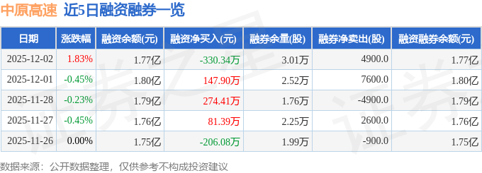中原高速融资融券信息显示,融资方面,当日融资买入472.4万元,融资偿还802.74万元,融资净偿还330.34万元。融券方面,融券卖出6200.0股,融券偿还1300.0股,融券余量3.01万股,融券余额13.42万元。融资融券余额1.77亿元。