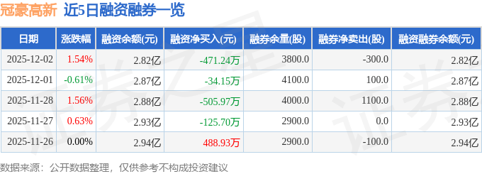 冠豪高新融资融券信息显示,融资方面,当日融资买入750.52万元,融资偿还1221.76万元,融资净偿还471.24万元。融券方面,融券卖出0.0股,融券偿还300.0股,融券余量3800.0股,融券余额1.25万元。融资融券余额2.82亿元。