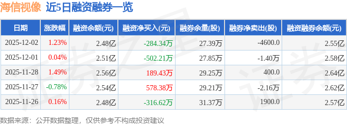 海信视像融资融券信息显示,融资方面,当日融资买入1416.13万元,融资偿还1700.47万元,融资净偿还284.34万元。融券方面,融券卖出3000.0股,融券偿还7600.0股,融券余量27.39万股,融券余额718.71万元。融资融券余额2.55亿元。