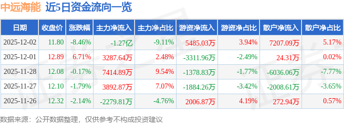 12月2日的资金流向数据方面,主力资金净流出1.27亿元,占总成交额9.11%,游资资金净流入5485.03万元,占总成交额3.94%,散户资金净流入7207.09万元,占总成交额5.17%。