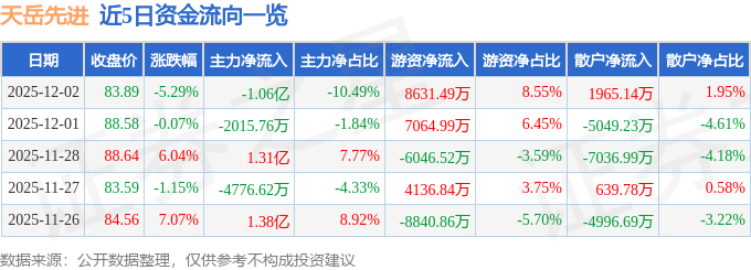 证券之星消息,截至2025年12月2日收盘,天岳先进(688234)报收于83.89元,下跌5.29%,换手率2.74%,成交量11.79万手,成交额10.1亿元。