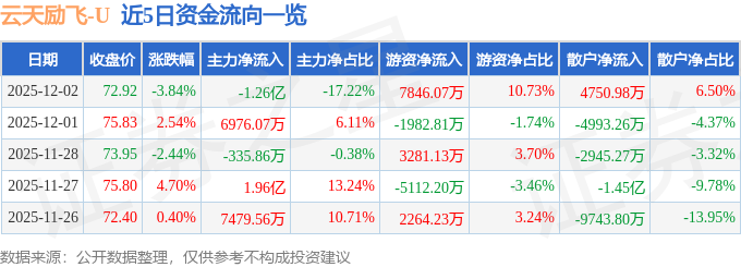 12月2日的资金流向数据方面,主力资金净流出1.26亿元,占总成交额17.22%,游资资金净流入7846.07万元,占总成交额10.73%,散户资金净流入4750.98万元,占总成交额6.5%。