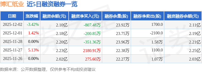 博汇纸业融资融券信息显示,融资方面,当日融资买入1374.65万元,融资偿还2182.13万元,融资净偿还807.48万元。融券方面,融券卖出2100.0股,融券偿还400.0股,融券余量23.92万股,融券余额148.78万元。融资融券余额2.11亿元。