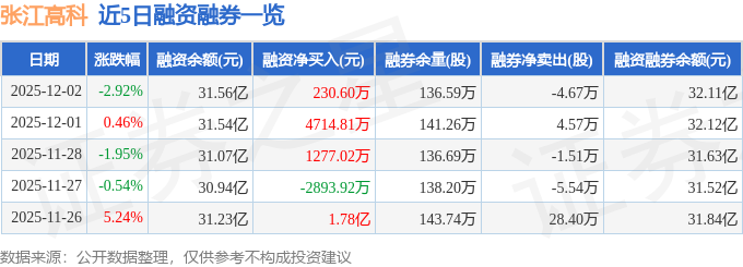 张江高科融资融券信息显示,融资方面,当日融资买入2.22亿元,融资偿还2.2亿元,融资净买入230.6万元,连续3日净买入累计6222.43万元。融券方面,融券卖出3100.0股,融券偿还4.98万股,融券余量136.59万股,融券余额5504.69万元。融资融券余额32.11亿元。